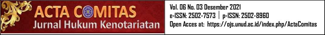 Putra, A. B. K. B. S., & Priyanto, I. M. D. (2020). Tanggung Jawab Notaris Dalam Pembuatan Akta Otentik Dengan Bahasa Asing. Acta Comitas: Jurnal Hukum Kenotariatan, 5(3), DOI: https://doi.org/10.24843/AC.2020.v05.i03.p08