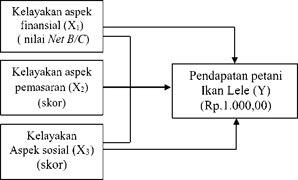 Tujuan penelitian ini secara umum adalah untuk mengetahui kelayakan aspek finansial, pemasaran, dan sosial usaha budidaya ikan lele dumbo dan pengaruhnya terhadap pendapatan petani Ikan Lele. Tujuan khususnya adalah untuk: (1) mengetahui kelayakan usaha dari aspek finansial, pemasaran, dan sosial, (2) mengetahui pengaruh secara parsial kelayakan aspek finansial, pemasaran, dan sosial usaha budidaya ikan lele dumbo terhadap pendapatan, (3) mengetahui pengaruh secara simultan kelayakan aspek finansial, pemasaran, dan sosial usaha budidaya ikan lele dumbo terhadap pendapatan, (4) mengetahui aspek kelayakan manakah yang memiliki pengaruh paling dominan terhadap pendapatan, dan (5) mengetahui kebutuhan modal usaha budidaya ikan lele dumbo.