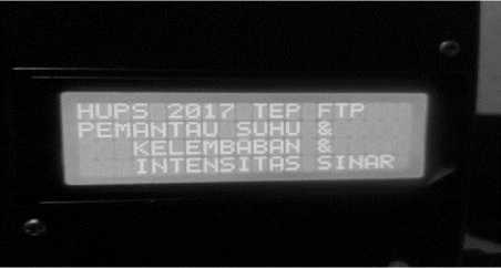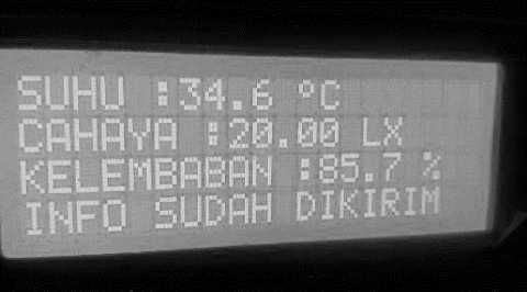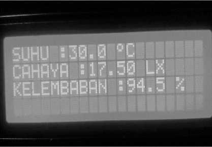 Gambar 8. Tampilan suhu, kelembaban dan intensitas cahaya pada LCD 4x20