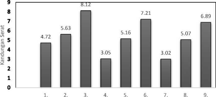 Dari hasil penelitian, diperoleh kandungan serat tertinggi adalah pada perlakuan perbandingan