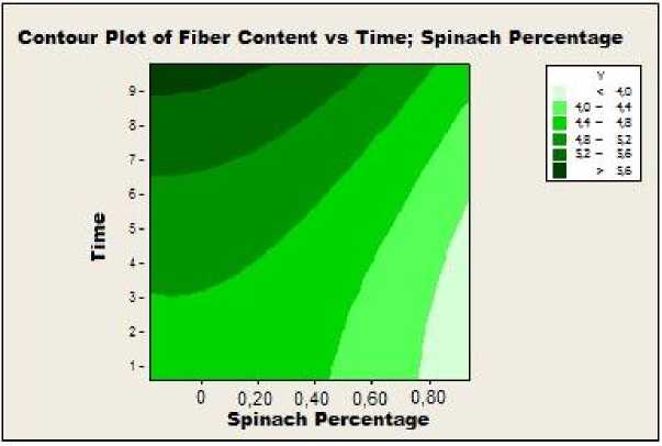 Setelah di produksi, saus bayam kemudian diuji kadar seratnya untuk masing-masing perlakuan. Perhitungan optimasi dilakukan dengan menggunakan program minitab 16 statistical software.