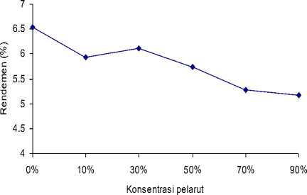 Gambar 2. Grafik pengaruh konsentrasi pelarut terhadap rendemen ekstrak bubuk kunyit