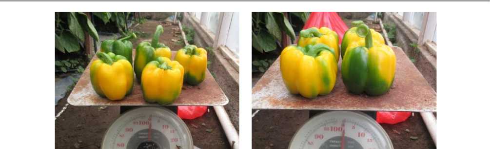 Gambar1 . a) Hasil Panen Paprika dengan budidaya konvensional, b) Hasil Panen Paprika dengan Penerapan GAP.
