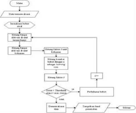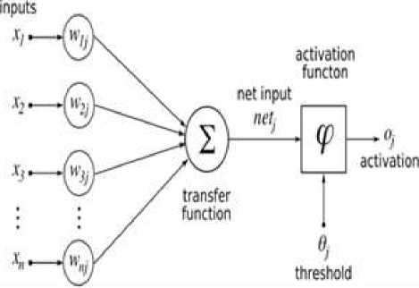 group of small processing units that are modeled to resemble the human nervous system [4]. The way ANN works is based on the workings of the human brain starting from receiving input, processing the input, giving processing results, and tolerating errors or errors ANN model allows to solve complex problems into smaller elements [5], so that the process of solving problems becomes more efficient [6]. The principle of the ANN model is that a network is built with input associated with a weighing factor [7], then all inputs are added to determine the function of neuron activation (Figure 1).