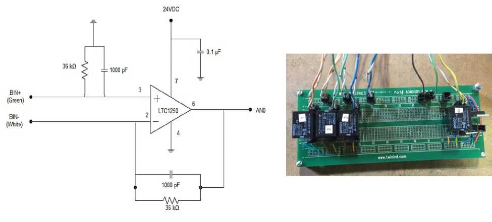 Figure 6. Load cell amplifier circuit diagram and the circuit board