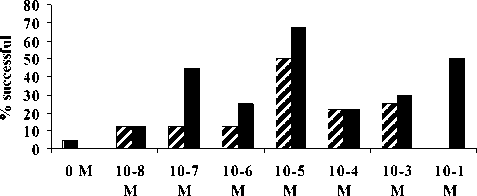 The Chi-square analysis indicates that the control (0 M) was significantly different from all concentrations except