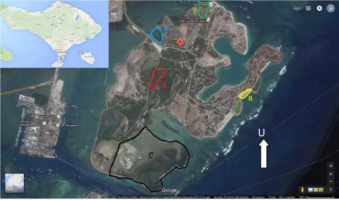 Gambar 1. Peta Lokasi penelitian di Pulau Serangan (Google map)