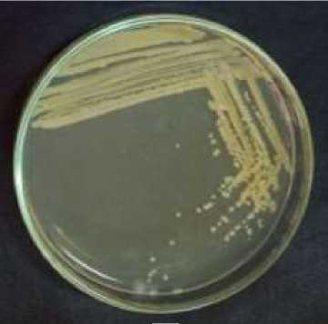 koloni berukuran kecil sampai sedang, permukaan halus, koloni berwarna kuning dengan media yang berubah menjadi warna kuning, dan sudah dikonfirmasi dengan dilakukan pewarnaan Gram
