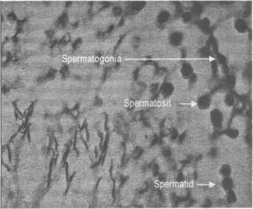 Keterangan : 1 (Spermatogonia), 2 (Spermatosit), 3 (spermatid), 4 (Sel sertoli)