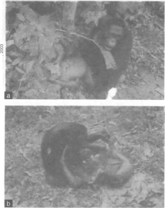 b. Bonek makan rayap (Foto Purwokuncoro, 2003)