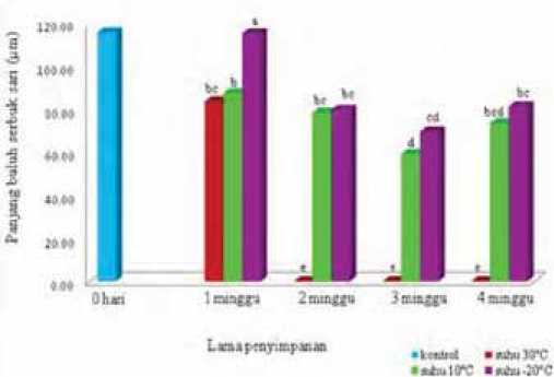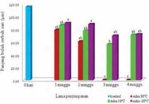 Gambar 4. Panjang buluh serbuk sari buah naga putih. Huruf yang sama menunjukkan tidak berbeda nyata (P≥0,05)