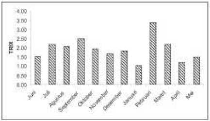Gambar 9. Rata-rata nilai TRIX secara temporal di Teluk Ambon Dalam