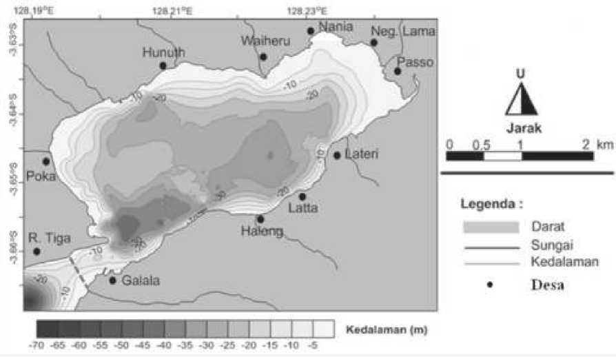 Gambar 2. Peta kedalaman Teluk Ambon Dalam