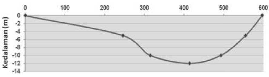 Gambar 3. Penampang Melintang Mulut Teluk Ambon Bagian Dalam (meter) pada Ambang Galala-Poka