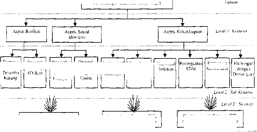 ditentukan melalui beberapa parameter mengikuti Bengen et al. (2003) pada Proyek Pesisir Lampung dengan pendekatan Proses Hierarki Analitik (Analytic Hierarchy Process, AHP), seperti pada Gambar 1.