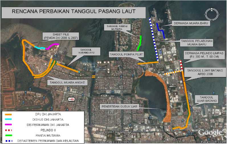 % dataran rendah di Jakarta di bawah muka laut pasang penanggulangan, telah dilakukan perbaikan tanggul pasang laut juga dilakukan normalisasi Waduk Pluit (Penjaringan Jakarta Utara)