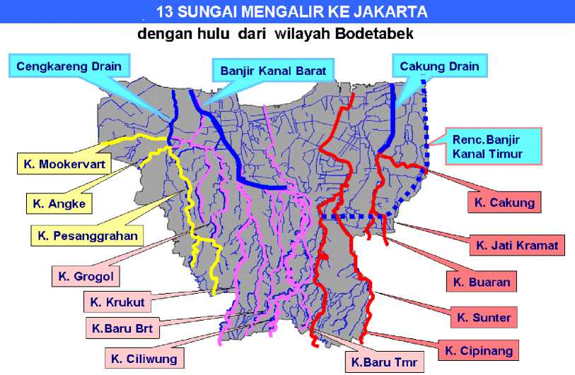 Gambar 4. Peta 13 aliran sungai di Jakarta