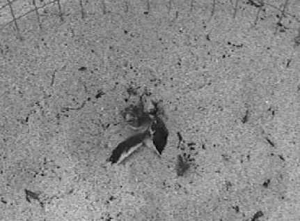 Gambar 3. Gambar Seekor Tukik yang baru menetas dan keluar dari lubang sarang (Foto.Sukada, 2006)