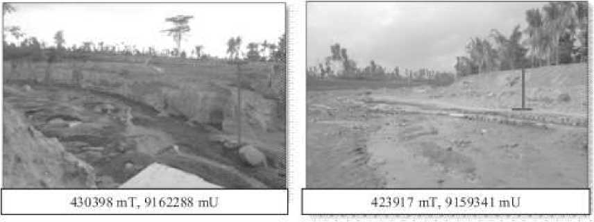 Hasil tracking banjir lahar dibuat grid untuk menentukan tinggi endapan banjir lahar. Grid adalah titik survey tinggi endapan banjir lahar. Selanjutnya cek dilapangan berapakah tinggi banjir lahar di tempat tersebut. Setelah diketahui dilakukan interpolasi titik ketinggian endapan dan didapatkan tinggi endapan banjir lahar 1 m, 2 m, dan 3 m (Gambar 2.2). Jumlah sampel