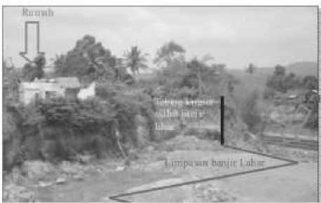 Cross Section dilakukan untuk menghitung luas penampang sungai berdasarkan hasil perhitungan lapangan menggunakan laser ace dan analisis topografi. Metode ini mengasumsikan volume setengah tabung sehingga diperoleh skenario volume dari setiap penampang melintang. Banjir lahar diprediksi menujur kontur lebih rendah, diketahui arah luapan banjir lahar (Gambar 2.3).