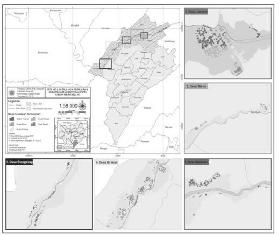 Gambar 3.3. Peta Kelas Kerusakan Permukiman Akibat Banjir Lahar di Kali Putih Kabupaten Magelang Tahun 2013
