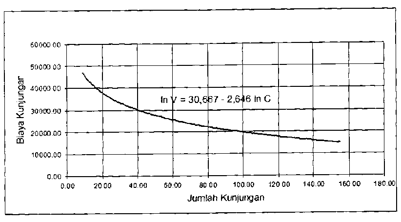 Berdasarkan model pendugaan kunjungan di atas, maka kurva permintaan rekreasi Danau Singkarak dapat digambarkan sebagai berikut: