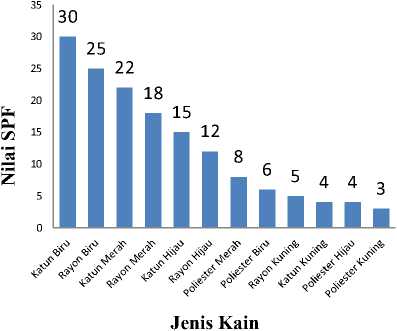 2. Nilai SPF dari masing-masing kain yang paling optimum yaitu pada jenis kain katun berwarna biru dengan nilai SPF sebesar 30