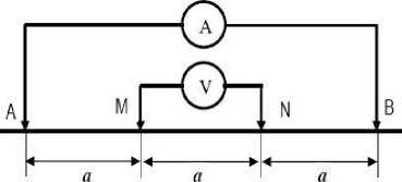Gambar 1. Elektroda arus dan potensial pada konfigurasi Wenner.