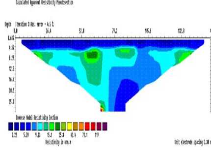 Gambar 3. Penampang Kontur Resistivitas Hasil Penelitian.
