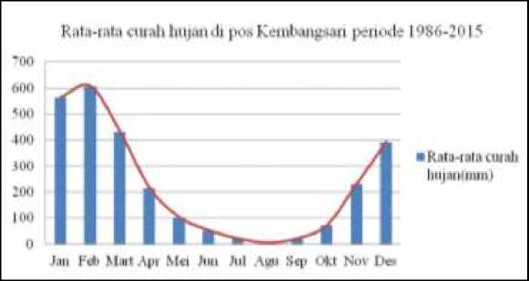 Gambar 3. Rata-rata curah hujan bulanan untuk pos Kembangsari.