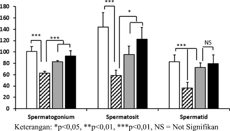 Berdasarkan uji statistik menunjukkan bahwa adanya perbedaan jumlah spermatogonium, spermatosit dan