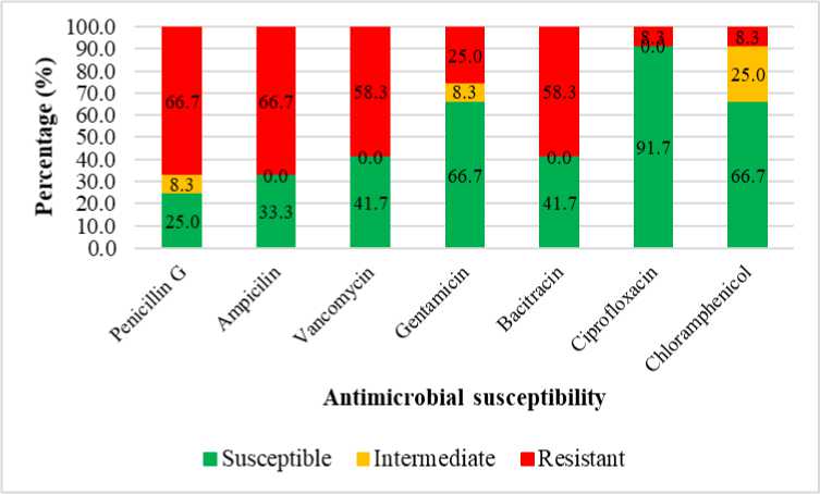 Figure 4. Antimicrobial susceptibility of Staphylococcus aureus (n = 12) isolated from cattle milk.