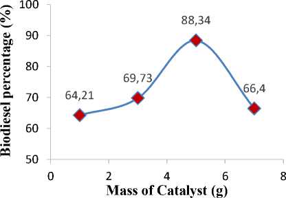 Figure 4. Effect of catalyst mass on biodiesel percentage