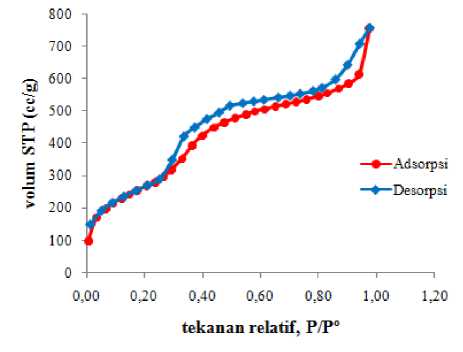 Gambar 4. Isoterm adsorpsi gas nitrogen pada MCM-41