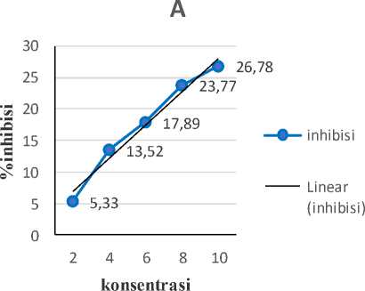 Nilai konsentrasi dan hambatan ekstrak diplot masing-masing pada sumbu x dan y. Persamaan garis yang diperoleh dimasukkan dalam bentuk rumus persamaan regresi linier y= b(x) + a yang