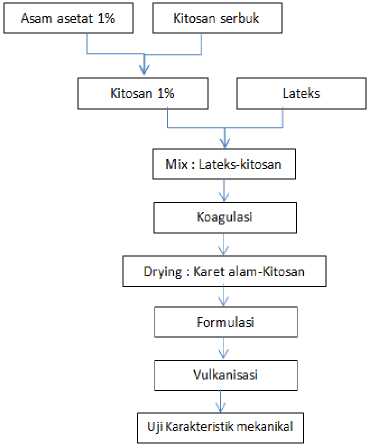 Prosesnya Pembuatan karet alam-kitosan di diagram bawah ini: