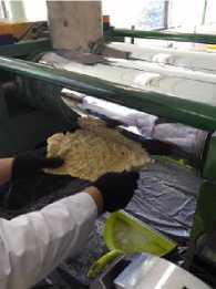 Gambar 6. (a) Proses pembuatan kompon karet, (b) sampel uji rheology, (c) Spesimen