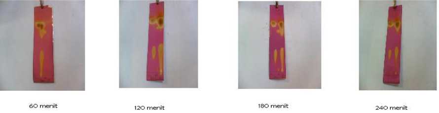 Hasilnya masih sama dengan menggunakan gliserol murni, belum ada tanda-tanda GG sudah terbentuk sesuai dengan hasil monitoring dengan menggunakan KLT.Hanya spot kedua starting material yang terlihat.