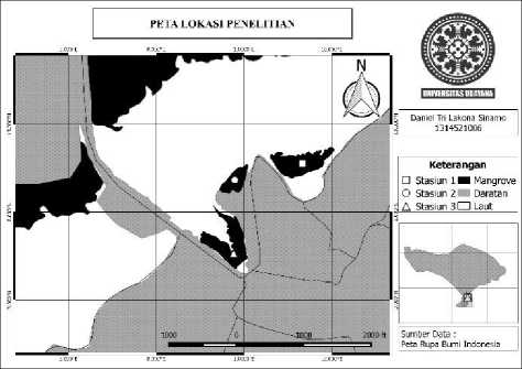 Penelitian ini dilaksanakan pada bulan November-Desember 2018 di kawasan vegetasi mangrove Pulau Serangan, Denpasar, Bali (Gambar 1), sementara untuk analisis dan identifikasi jenis Krustasea dilaksanakan selama dua bulan pada Desember 2018 - Februari 2019 di Laboratorium Perikanan Fakultas Kelauan dan Perikanan Universitas Udayana.
