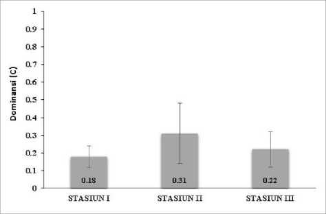 Nilai indeks dominansi Krustasea kelas Malacostraca berkisar antara 0,18 sampai dengan 0,31, dimana stasiun II memiliki dominansi terbesar dari ketiga stasiun, namun indeks dominansi ketiga stasiun penelitan berdasarkan Indeks dominansi Simpson termasuk kedalam kategori dominansi rendah (Tabel 3).