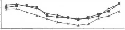 In the semi-monsoonal type, time series ofmonthly rainfall point by point relationship showed two point gauges in medium correlation (r=0.51-0.52) and five point gauges in low correlation (r=0.12-0.29), and generally, RMSE based on seven point gauges were more than 100 (mm/month). The average time series ofmonthly rainfall from TRMM PR3A25 was slightly than monthly gauge data, where the average time series monthly rainfall were 199.9 (mm/month) and 213.0 (mm/month), respectively. The pattern of average time series monthly rainfall was similar to gauge data and the coefficient correlation was medium correlation (r=0.59) and RMSE was 76.4 mm/month (Figure 3a). Furthermore, the monthly average rainfall pattern of TRMM PR data showed very good agreement with the ground reference data (r=0.82) and RMSE was 33.S (mm/month) (Figure 3b).