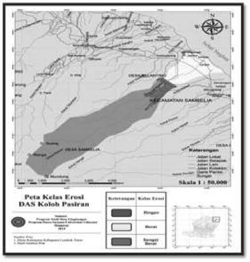 1. Nilai erosi di DAS Koloh Pasiran berkisar antara 0,52 sampai 217,36 ton/ha/thn yang tergolong ringan sampai sangat berat. Erosi ringan terjadi pada unit lahan kebun campuran, hutan primer dan hutan sekunder sedangkan erosi berat sampai sangat berat terjadi pada unit lahan tegalan dan semak belukar.