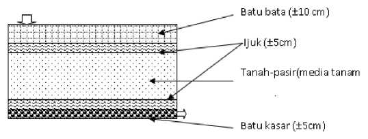 For laboratory simulation, the plants were cultured in 25 cm sand bed, in between 5 cm palmfiber of which were in between 10 cm pumicestone for the top and 5 cm gravel for the bottom with surface area of 25 x 50 cm2.
