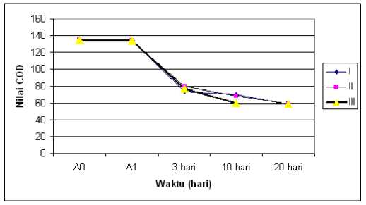 Tabel 4. Efektivitas penurunan nilai COD pada retensi waktu 3, 10 dan 20 hari