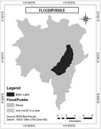 2011 file id (ASTGTM2_S09E115_dem.tif) download from the website www.earthexplorer.usgs.gov.; soil data map scale 1: 50.000 (shp file,) year 2016 from Research Center of Ministry of Agriculture (BBSDLP) Bogor Indonesia; erosion map and flood/puddle map scale 1:50.000 (shp file), year 2017 from Bali-Penida River Region Office (BWS Bali-Penida) Renon Bali.