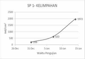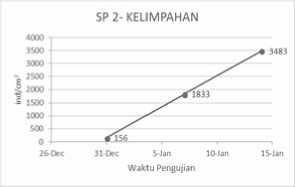 SP1 pada tanggal 31 Desember 2017 lebih besar nilainya dibandingkan dengan SP 2,kemungkinan dikarenakan kandungan nitrat (NO3) pada SP2 saat itu sangat kecil sehingga pertumbuhan Perifiton mengalami pelambatan.