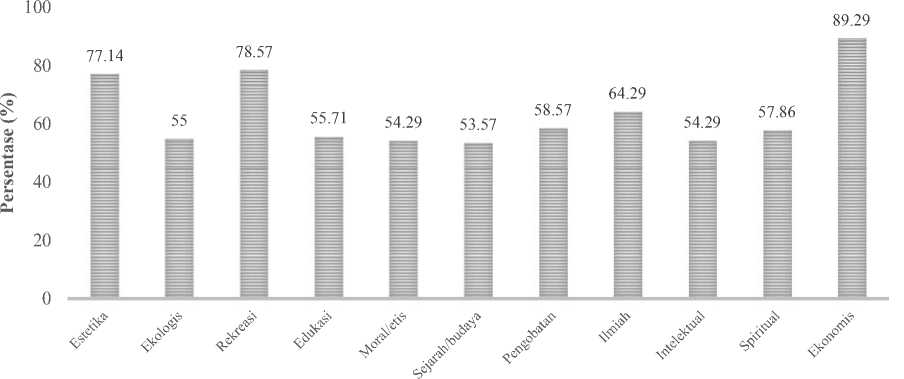 yang paling tinggi (95%) yaitu nilai ekonomis dan nilai yang paling rendah (50,71%) yaitu