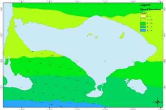 During the rainy season which lasts during December, January and February during 2015, the speed and direction of the wind produced varies. In January, the wind direction came from the southwest to the northeast with wind speeds ranging from 5 – 5.9 m/s while in February, the wind direction came from the south to the northeast with wind speeds ranging from 2.1 – 2.9 m/s and in December, the wind direction comes from west to southeast with wind speeds ranging from 2 – 2.9 m/s. The results of the analysis in 2016 also showed varied results. In January, the wind direction comes from the west to the southeast with an average wind speed of 1.1 – 2.1 m/s, whereas in February, the wind direction comes from the southwest to the northeast with an average wind speed of 3.3 – 4.2 m/s and in December, the wind direction is from