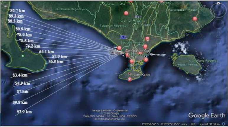 Tabanan Ragency and the location endpoint is in the Seminyak area. Mengening Beach and the Canggu area beach have the characteristics of black sand while the beaches of the Seminyak area have the characteristics of white sand.