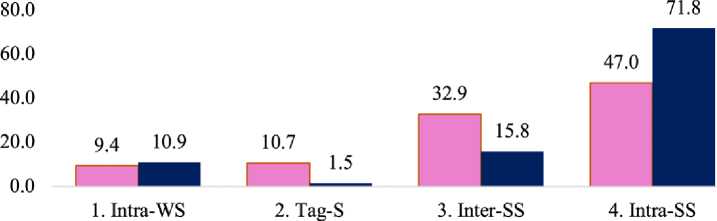 Figure 1 shows that intra-SS is mostly employed by MP and FP. They are different in that both MP and FP employed intra-SS in different percentage. MP employ intra-SS in 71.8% while FP in 47%. In the following discussion, each of CS types employed in T JA and T SIS will be presented. The first type discussed is Intra-WS since it is rarely put in the researcher’s consideration.